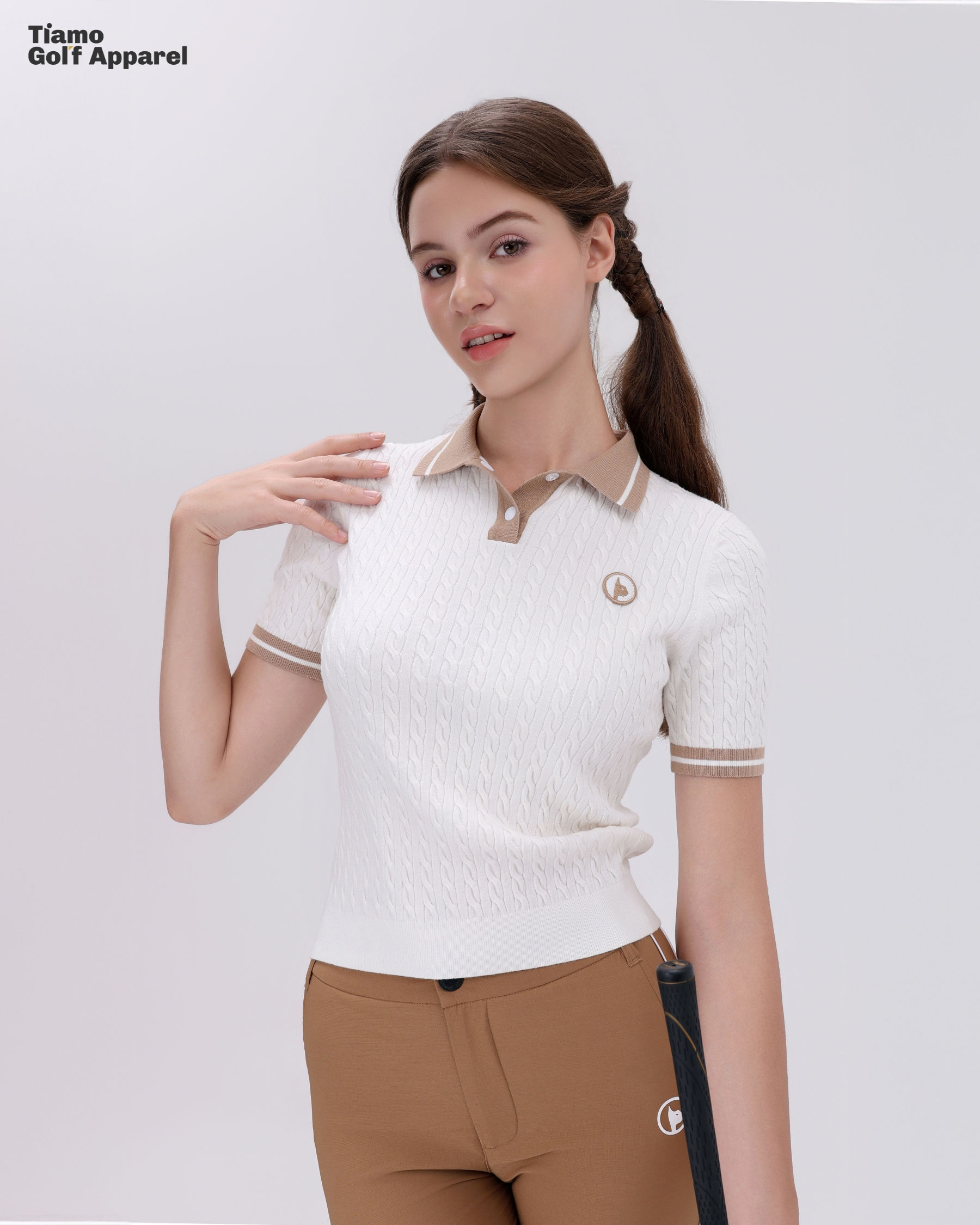 Áo Polo Dệt Kim Nữ Ngắn Tay
